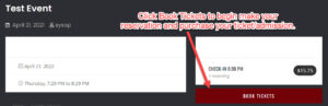 - On the event page, click the ‘Book Tickets’ button under the list of check-in times.