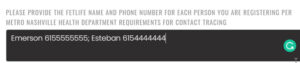 Contact information for each person you are buying tickets for (required by Metro Public Health Department for possible contact tracing) (required for all tickets)
