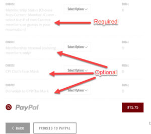 - Membership Status (required): If all of the tickets you are purchasing are for members with current (not expired) membership, then select only the first checkbox for ‘Current Member’, which adds $0.If your purchase includes any tickets for guests or CPI members with expired membership, then select the checkbox for the number of tickets you are purchasing for Guest/Non-Current Member.