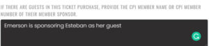 Note who the member sponsor is if there are any guests in this purchase. (required for guest tickets)
